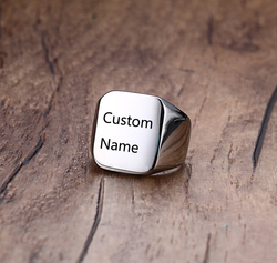 Men Fashion Polished Titanium Steel Jewelry Gold Silver Custom Name Ring