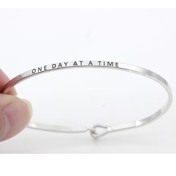High Quality Simple Letter Copper Jewelry One Day At A Time Inspirational Bangle YP6450