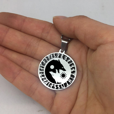 Wholesale Price Jewelry Moon Sun Yin Yang Wolf Stainless Steel Disc Necklace for Men and Women YP6698